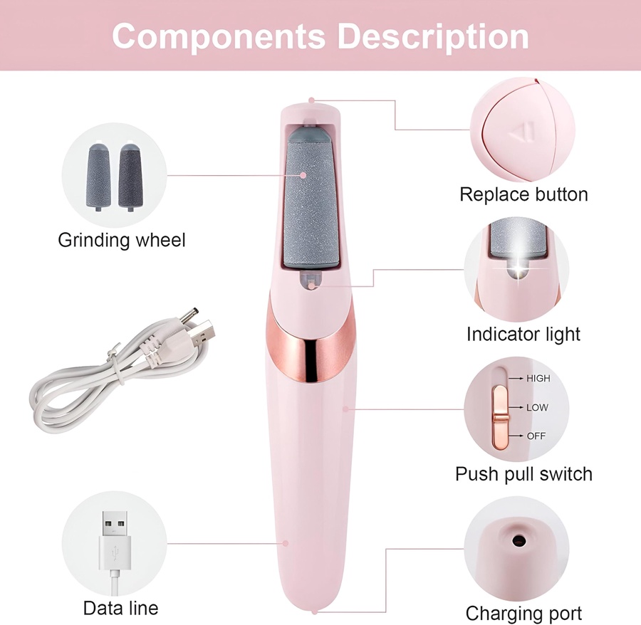 جهاز باديكير كهربائي يزيل الجلد الميت والتشققات بسهولة، مع رؤوس متعددة للتنعيم والتقشير وتصميم محمول يمنحك أقدامًا ناعمة دون الحاجة لصالونات التجميل.
