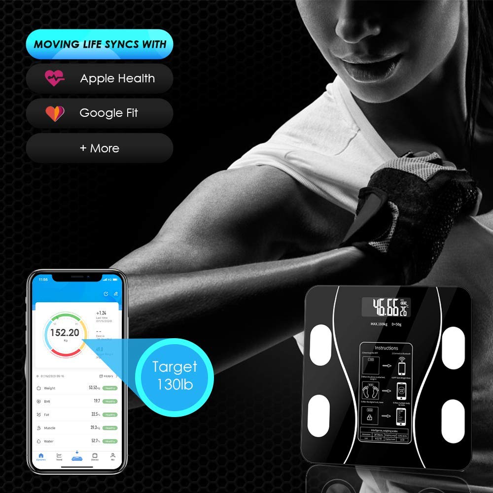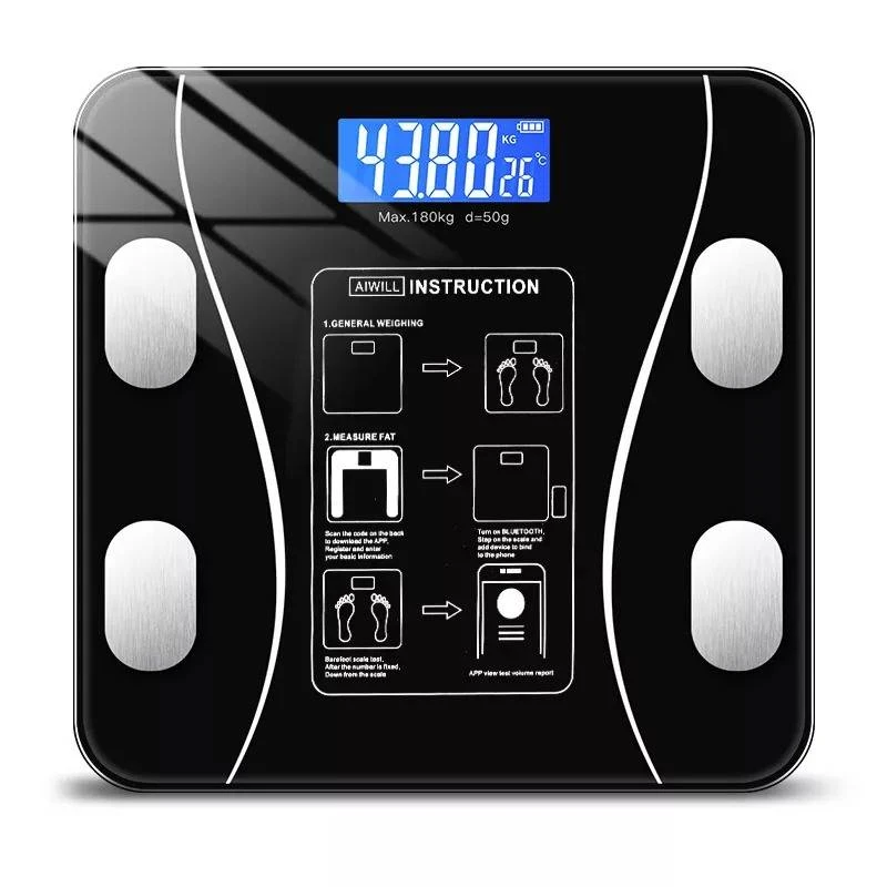 ميزان رقمي أنيق يقيس الوزن ونسبة الدهون بدقة، مع تقنية ذكية للتوصيل بتطبيق الهاتف لمتابعة تحليلاتك الصحية بسهولة.