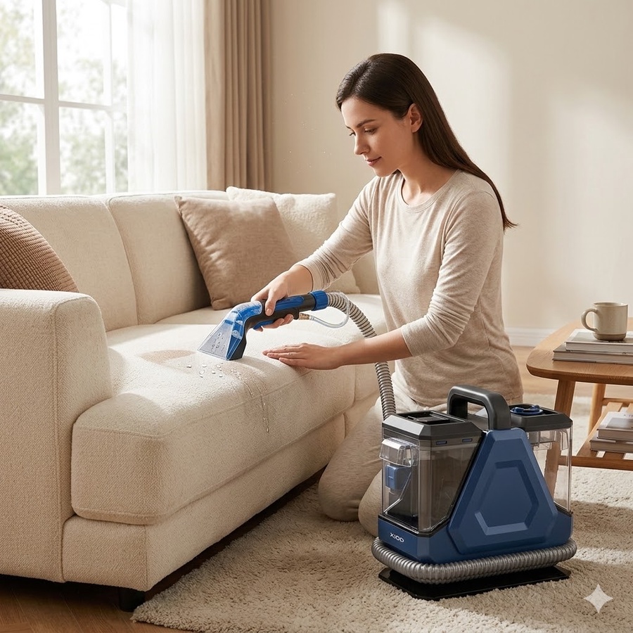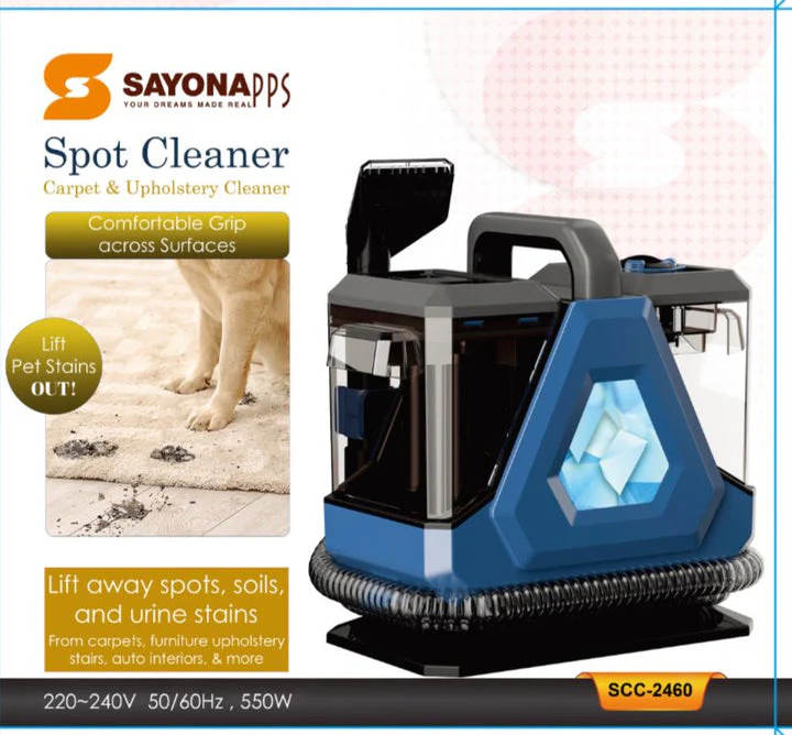 جهاز تنظيف السجاد والكنب بقوة 550 واط يزيل البقع العميقة بسهولة، مع خزانين للماء النظيف والمتسخ وتصميم محمول مثالي للمنزل والسيارة.