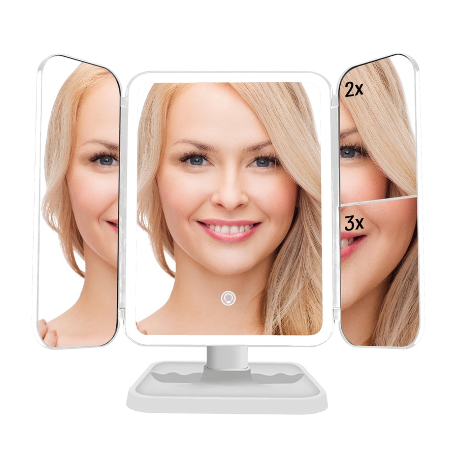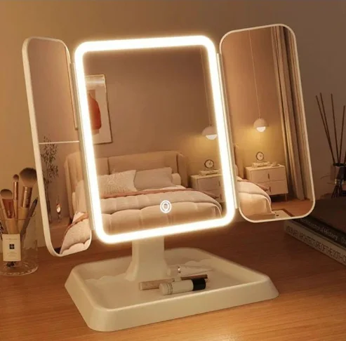 مرآة مكياج Auxmir بإضاءة LED قوية و3 ألوان مع تكبير متعدد، قابلة للطي وقابلة للشحن، تمنحك دقة مثالية في كل إطلالة.