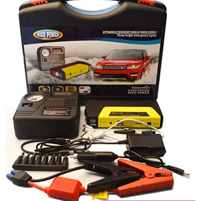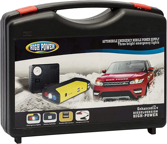 جهاز طوارئ للسيارة يشغل البطارية وينفخ الإطارات مع باور بنك وإضاءة، حل عملي وآمن لكل رحلاتك.