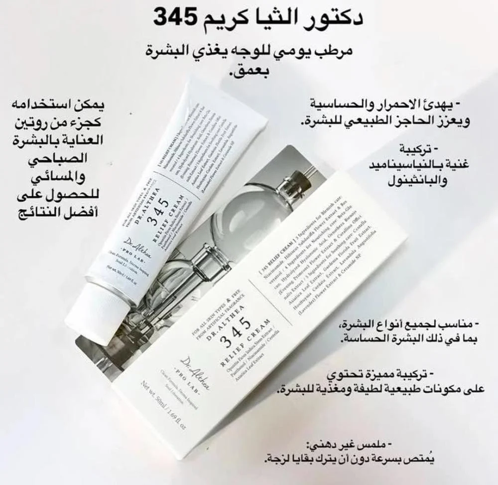 كريم Dr. Althea 345 يهدئ الاحمرار ويرطب بعمق، يقوي حاجز البشرة ويمنح نعومة فورية، مثالي للبشرة الحساسة والمتعبة.