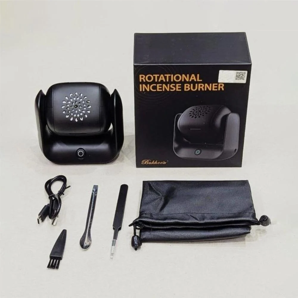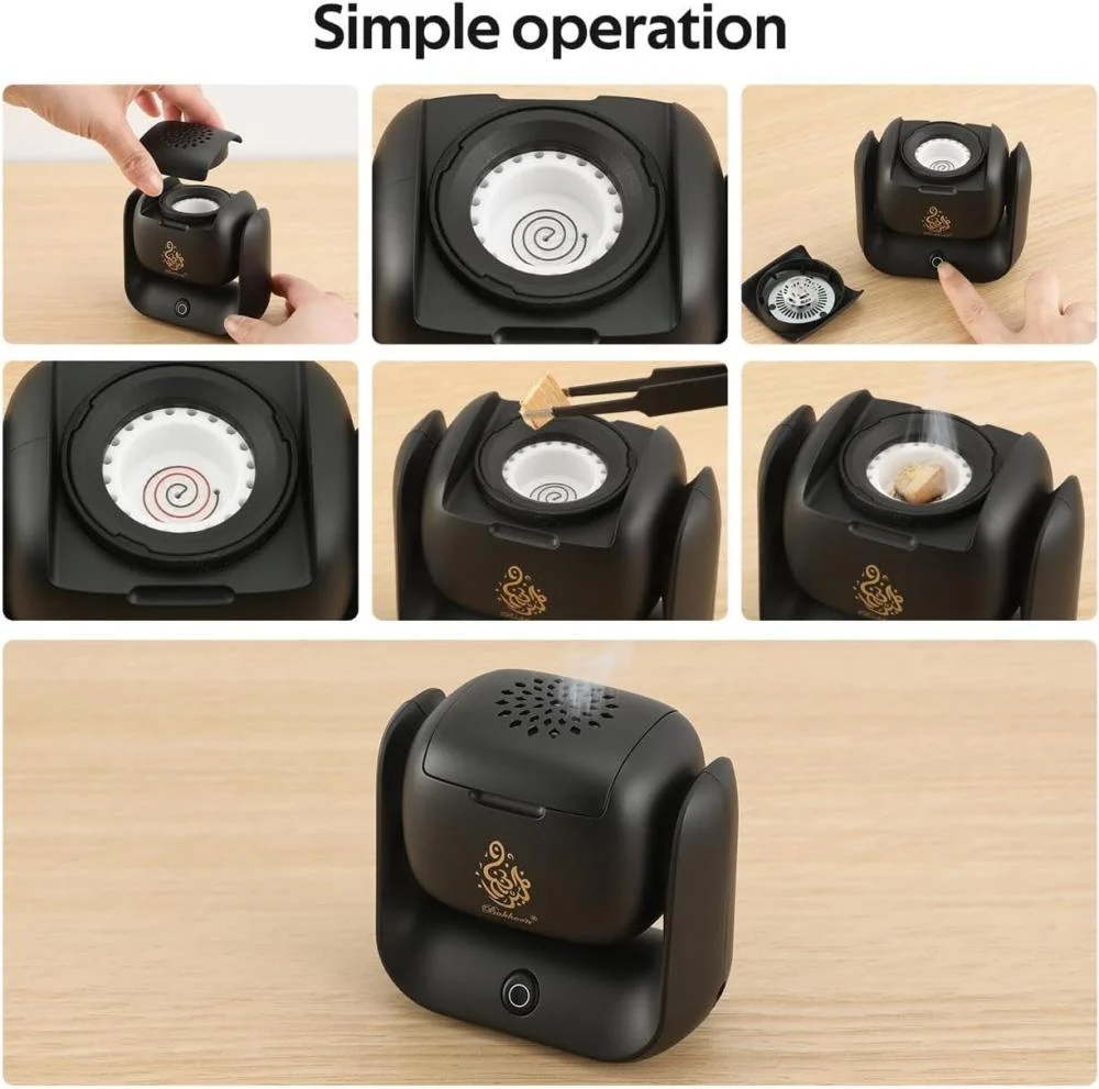 مبخرة إلكترونية دوارة تمنحك تعطير فخم بضغطة زر، بدون فحم أو دخان، مثالية للبيت والسيارة والمكتب بتصميم أنيق.