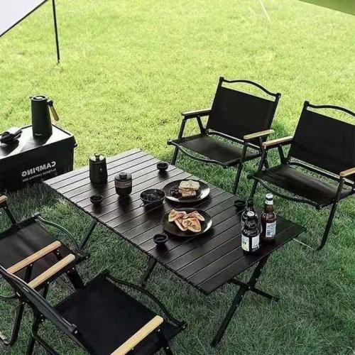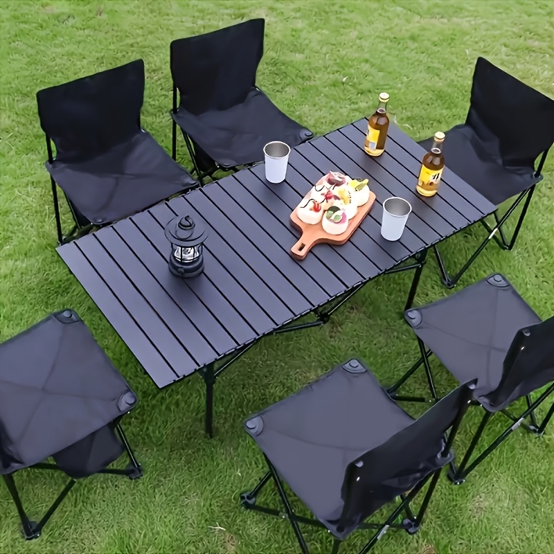 طقم طاولة ألمنيوم مع 6 كراسي قابلة للطي، خفيف ومتين للرحلات والتخييم، سهل الحمل والتخزين لراحة مثالية في كل مكان.