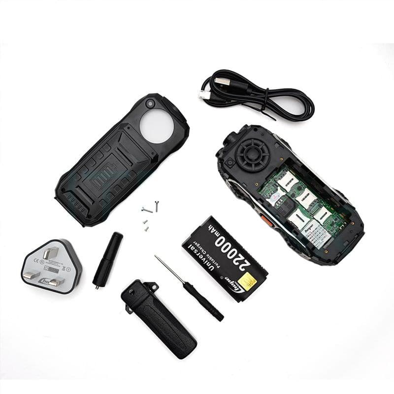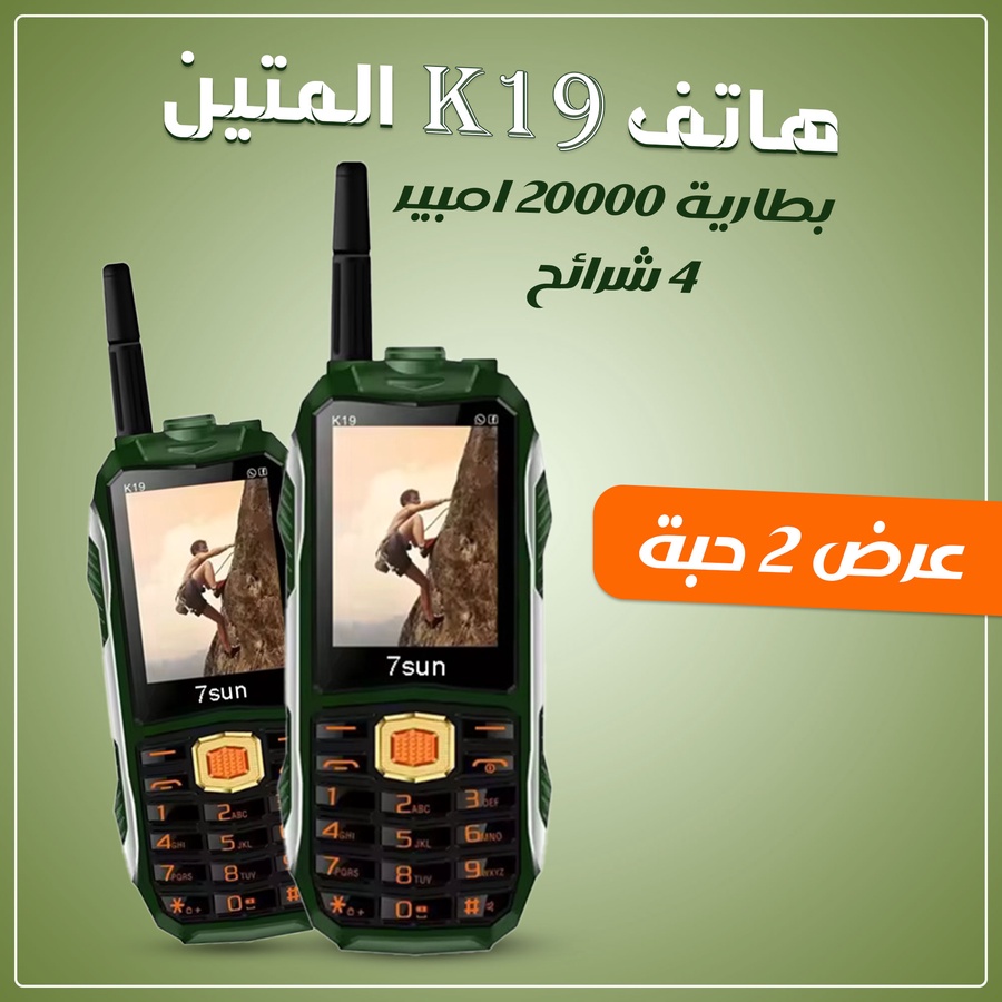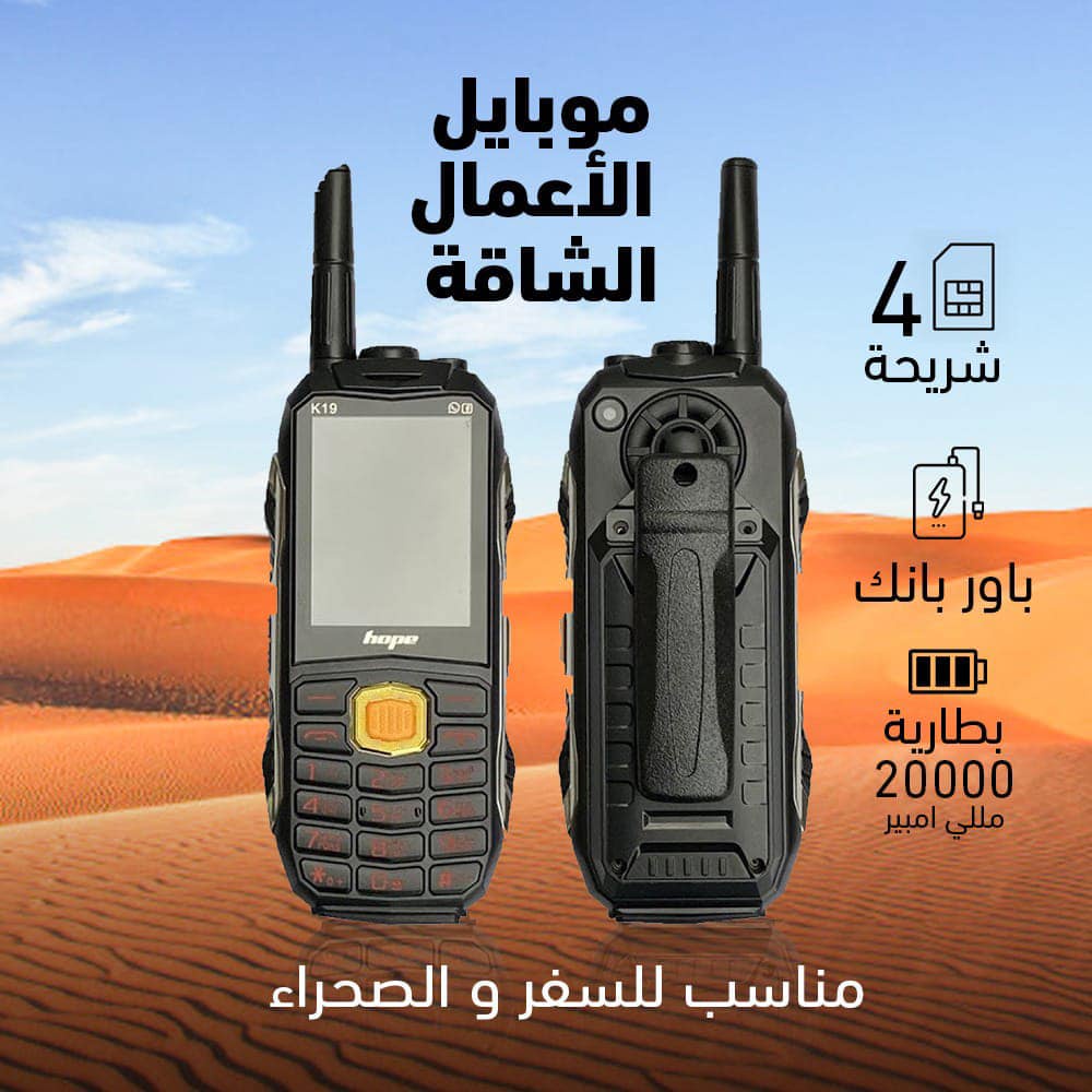 جوال Hope K19 ببطارية 22000mAh يدوم أيام، يدعم 4 شرائح مع إشارة قوية وكشاف، مثالي للبر والرحلات والظروف القاسية.