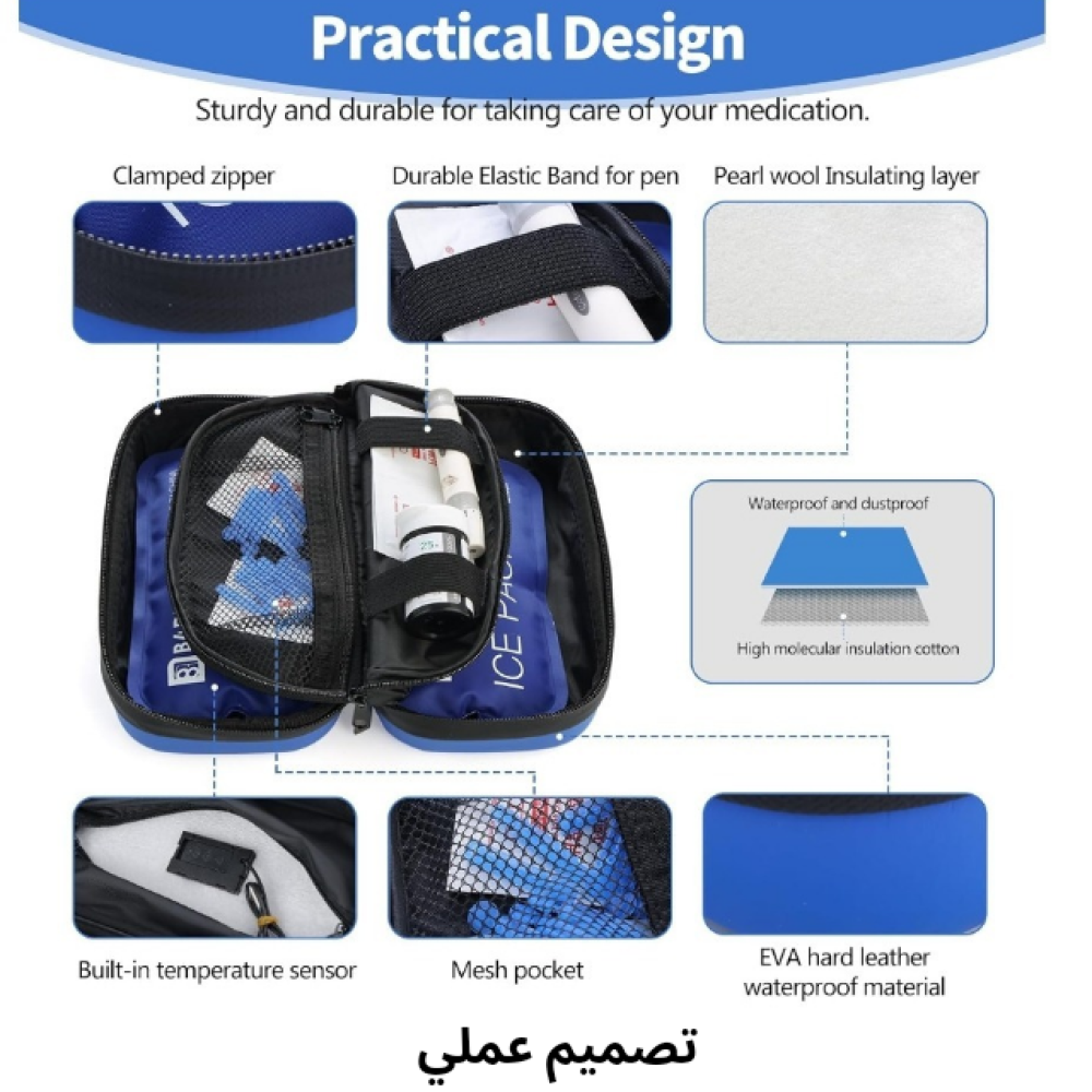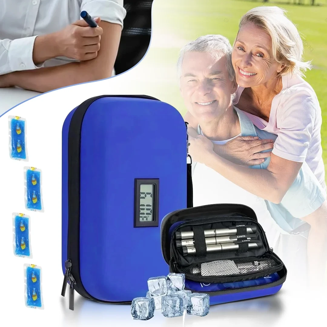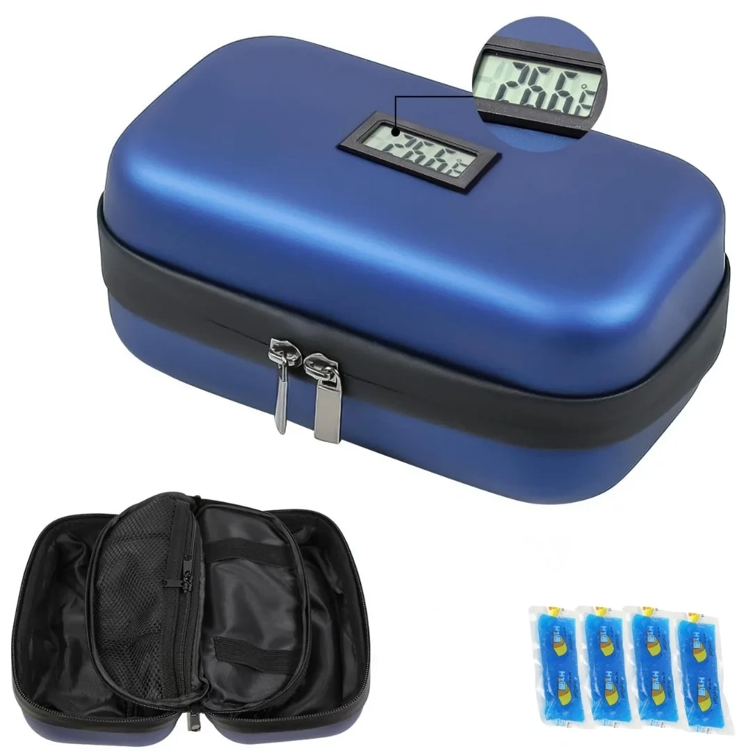 حقيبة تبريد الأنسولين مع 4 أكياس جل تحافظ على درجة حرارة ثابتة، شاشة LCD لمراقبة الحرارة ومثالية للسفر والتنقل.