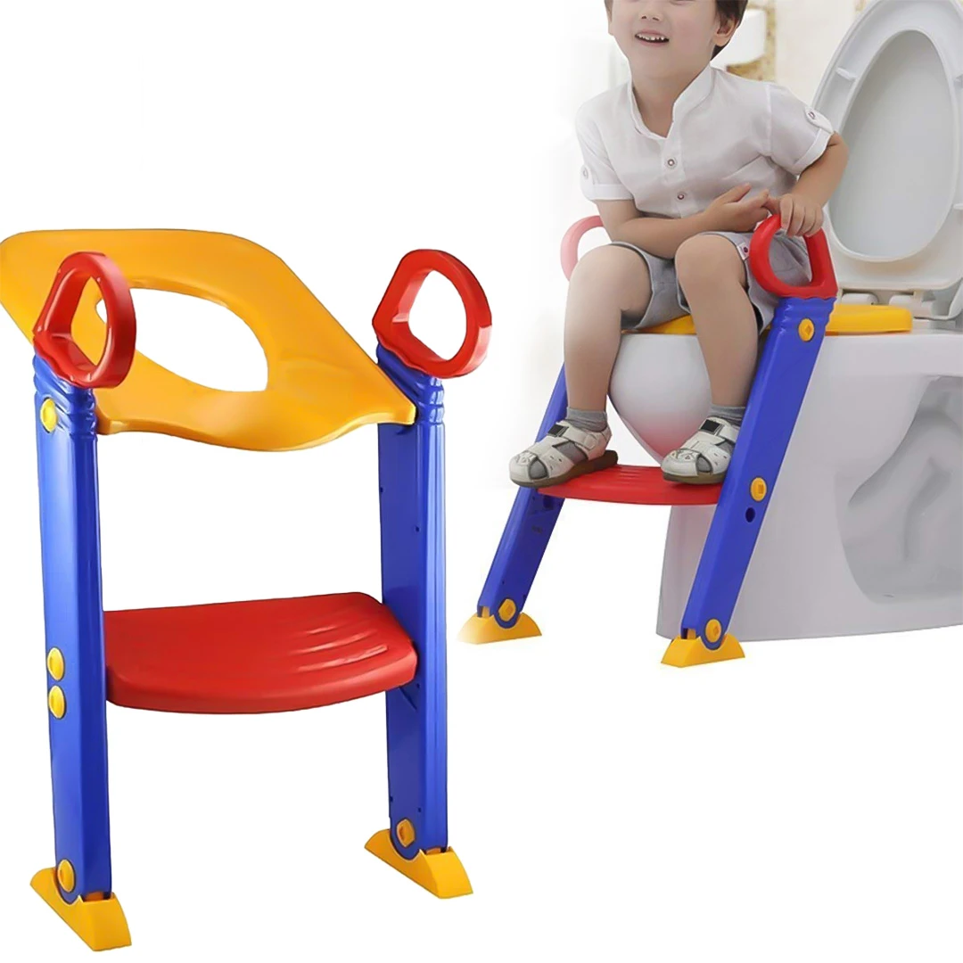 كرسي تدريب الأطفال مع سلم آمن ومضاد للانزلاق، يساعد طفلك على استخدام الحمام بثقة واستقلالية مع تصميم مريح وسهل التخزين.