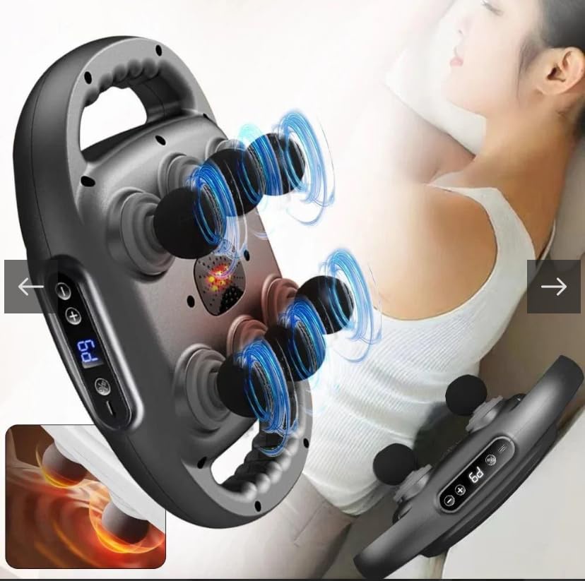 جهاز مساج سداسي مع 6 رؤوس، تخفيف الألم، استرخاء العضلات، بطارية طويلة، محمول وسهل الاستخدام في أي مكان.