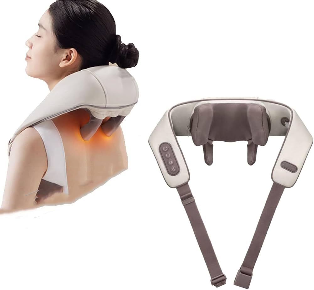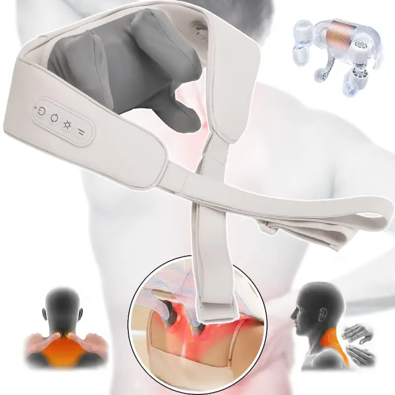 جهاز مساج للرقبة والكتف مع حرارة ذكية يخفف الشد والألم، تصميم محمول وشحن Type-C لراحة واسترخاء يومي.