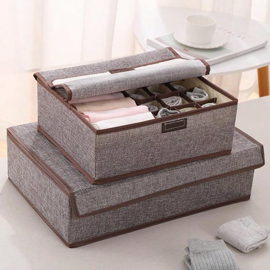 صندوق تخزين الملابس الداخلية مع غطاء ودرج قابل للطي لتخزين الجوارب والملابس الداخلية ومرتبة الصدريات وحجرة التخزين.