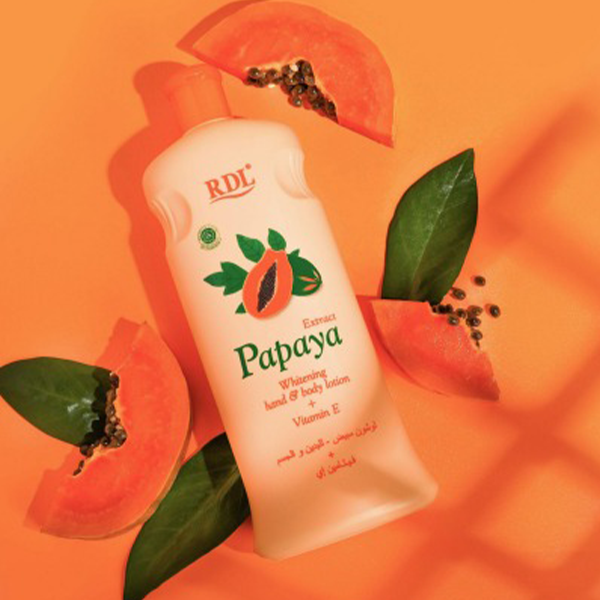 لوشن البابايا - مبيض اليدين والجسم بخلاصة البابايا وفيتامين اي 600 مل ار دي ال