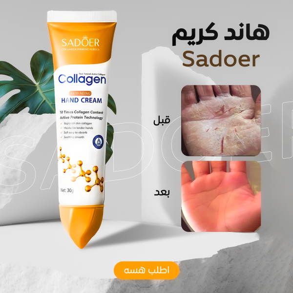 عرض 1+1 كريم كولاجين SADOER يرطب اليدين ويخفف الجفاف ويمنح نعومة وتفتيح ملحوظ بقوام خفيف سريع الامتصاص.