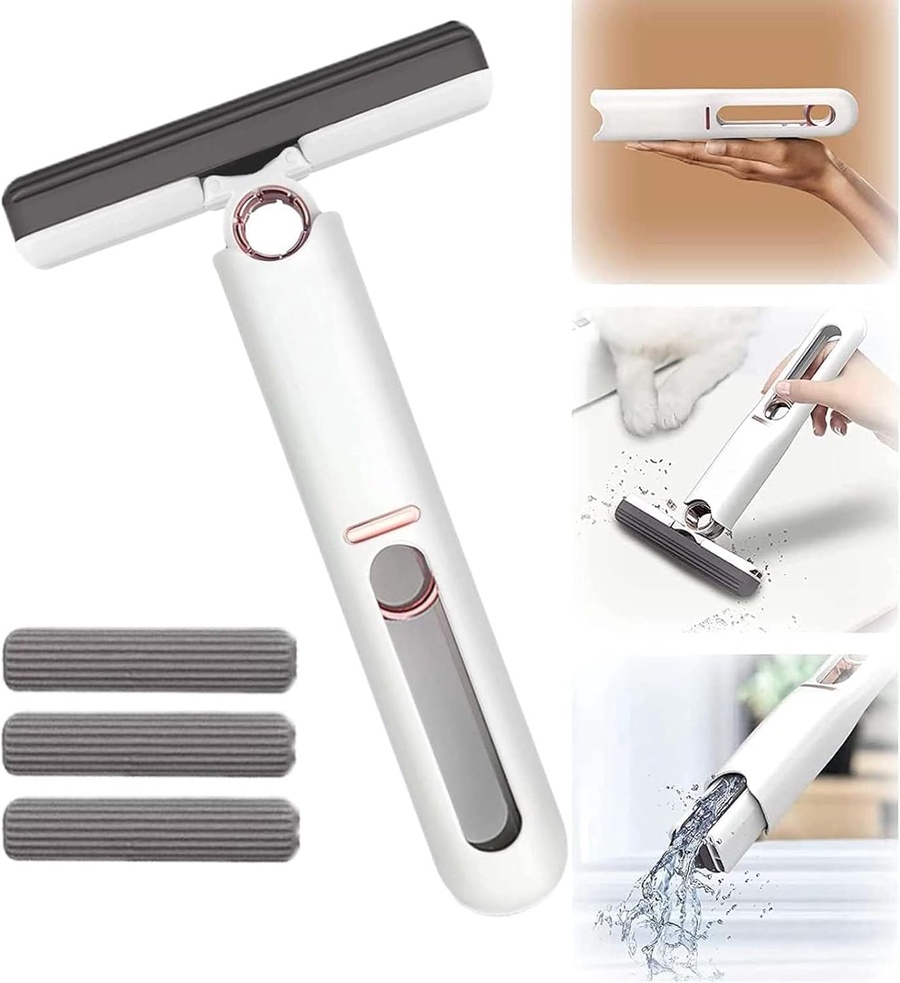 عرض 1+1 - ممسحه موب قصيرة محمولة ذاتية الضغط، لتنظيف بدون استخدام اليدين