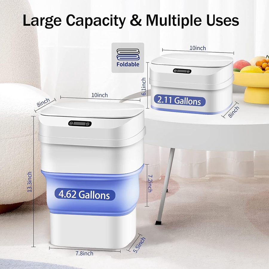 سلة مهملات اوتوماتيكية ذكية بدون لمس، سلة مهملات قابلة للتعديل مع غطاء مقاوم للماء، مناسبة للاستخدام في المطبخ وغرفة النوم والحمام والمنزل والمكتب (سعة 17.5 لتر)، بلاستيك، مستشعر الحركة