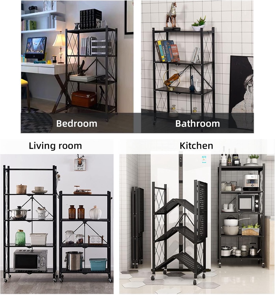وحدة تخزين معدينه سهلة الطى - لخزانة المطبخ والمخابز، سلك معدني، رف منظم قابل للطي، متينة على عجلات